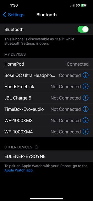 圖片中的HomePod 不知道為何會出現在藍芽配對