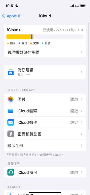 平常是用iCloud雲端同步 iCloud容量也還有超過1TB