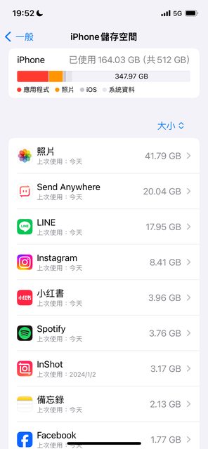 手機是iPhone12pro 512GB 目前還有300多GB的記憶體
