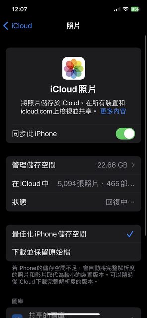 的icloud家庭,想說同步照片可以節省容量,原來有購買icloud 50g的方案,結果同步照片