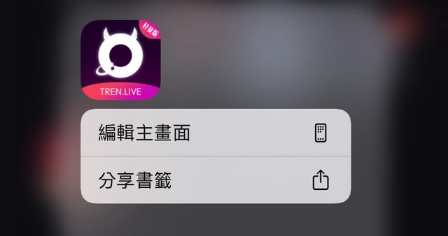 1.最基本長按App刪除,僅有「分享主畫面與分享書籤」,沒有移除的選項