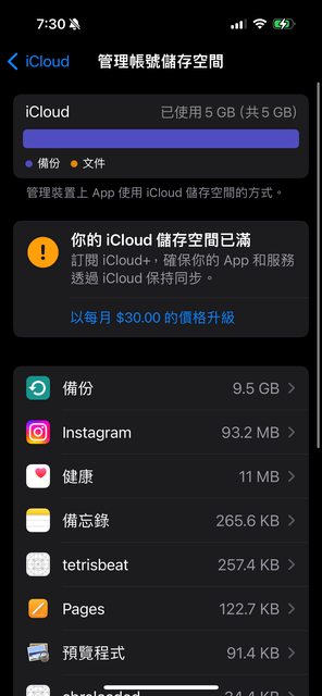 換手機後iCloud 一直出現容量不足的問題