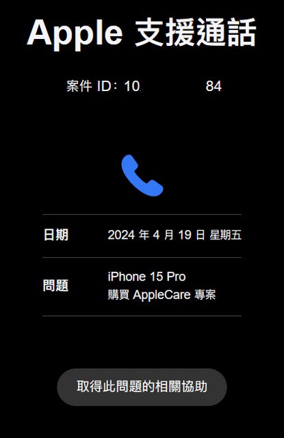 今早就從AppleSupport的點選聯繫,
