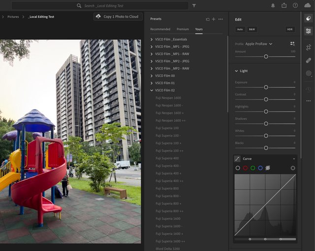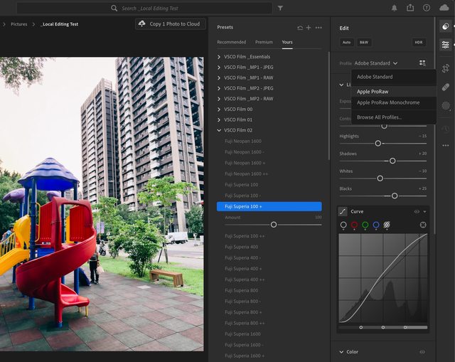 以後預覽和套用的時候,該 preset 就會自動使用 Apple 的 ProRAW 描述檔了!