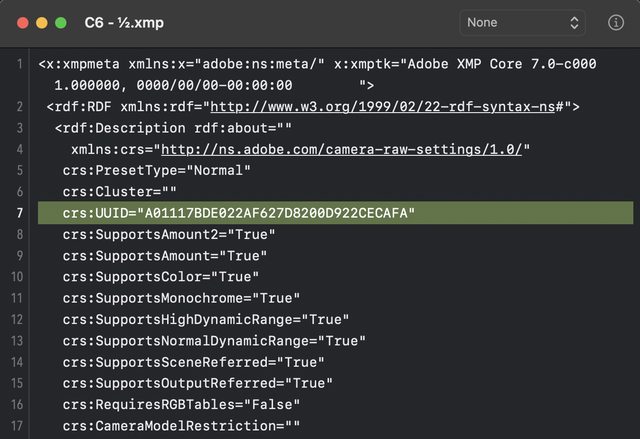 crs:CameraProfileDigest="XXXX...XXXX"
