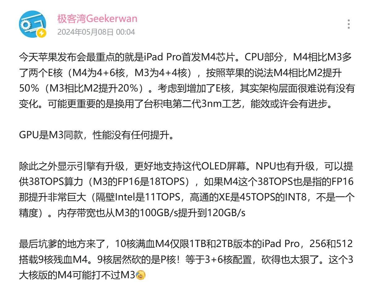 推 xoy: 四個效能核心的M4不是只有1TB以上的版本才有? 05/09 08:19