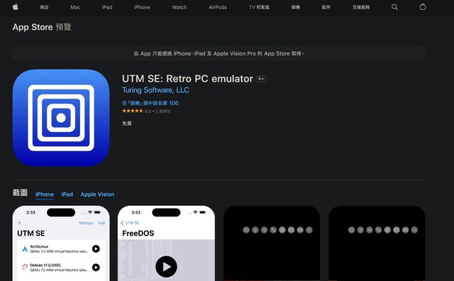 標題[新聞] App Store 首款 PC 模擬器!蘋果批准「UTM SE」App 上架