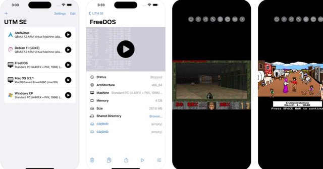 UTM SE 是一款模擬電腦運行經典軟體和遊戲的應用程式,不附帶任何作業系統,但 app
