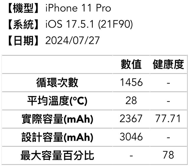→ cylu7878: 我老婆XR健康90也是去年換電池 不知是否主板老化漏電08/03 23:54
