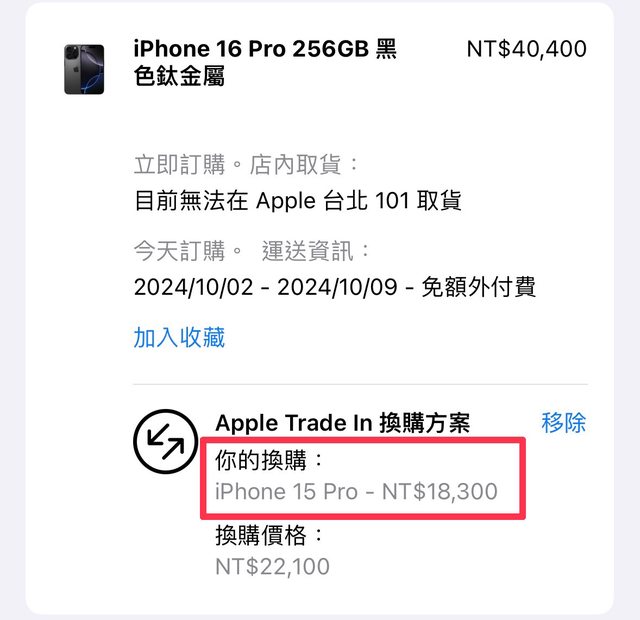 → oopsskimo: Trade in 價下降蠻多的 只能自己賣 09/14 14:54