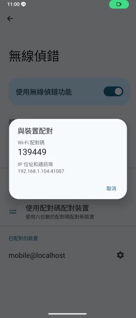 Android手機開啟開發人員選項,啟用無線ADB偵錯,取得配對碼