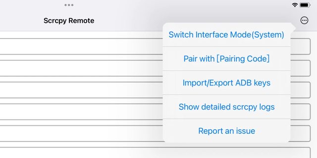 Scrcpy,點選右上角Pair with Pairing Code,輸入IP、通訊埠、配對碼