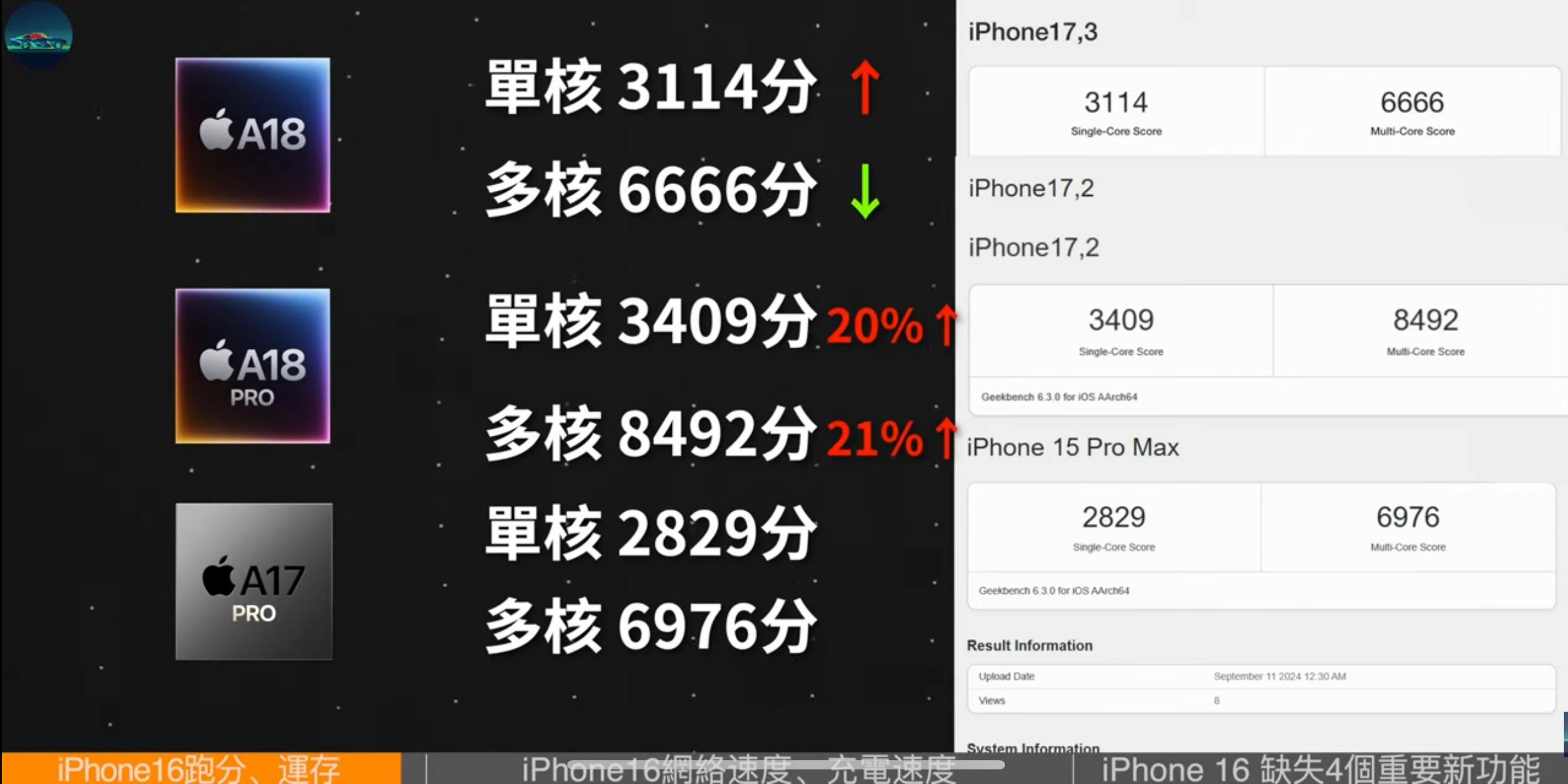 推 sai25: 新的Geekbench分數是A18跟A18pro都約8千附近 可能差不多 09/16 01:31