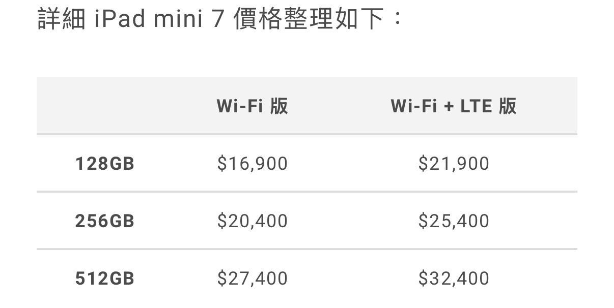 → cpz: Air和mini差3000,只贏在螢幕大,數字版還比mini便宜螢幕還大 10/16 13:50