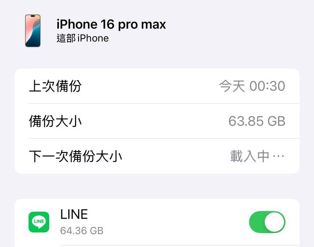 備份檔已經有一個64G的Line備份檔了