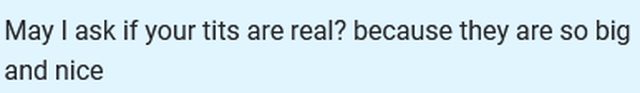 問: 可以問妳的奶是真的嗎? 因為又大又完美.