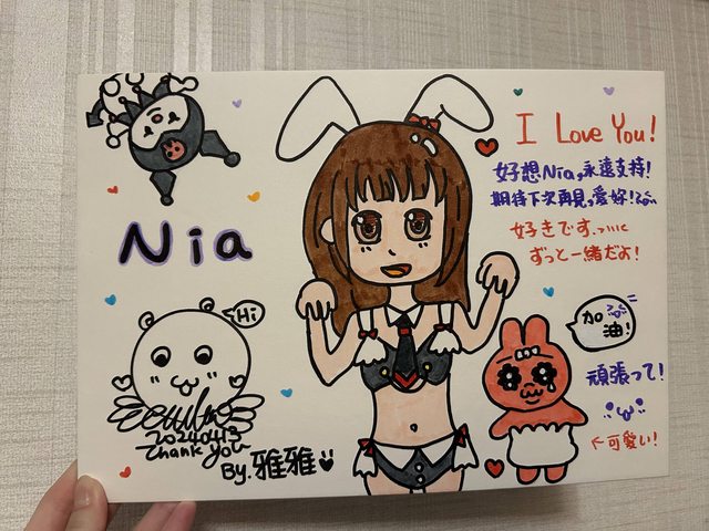 我覺得Nia比較靦腆一點,說話很溫柔,但是很認真聽粉絲說的話,然後給回應~