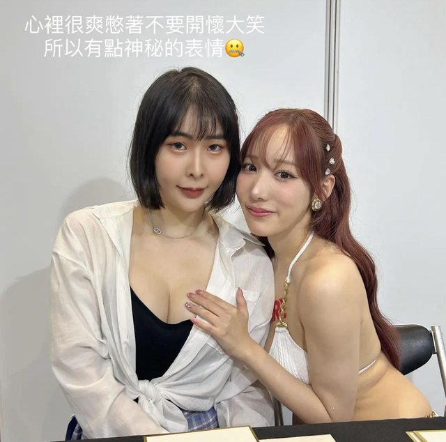 然後我就請翻譯人員幫我說最喜歡小宵虎南的歐派,身材很好!!見到本人很開心!!