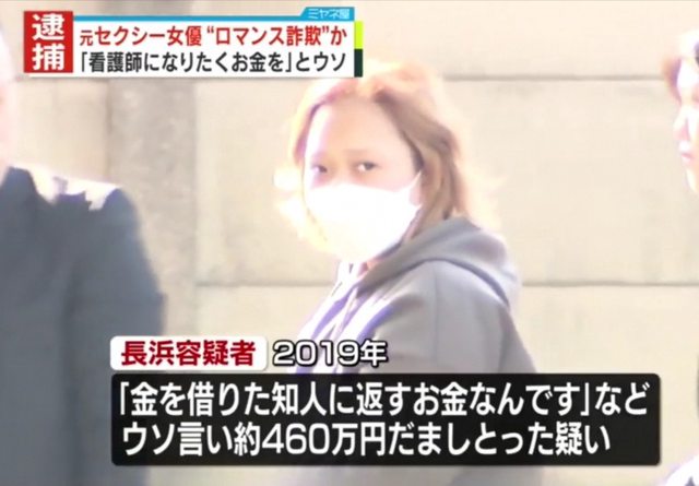 女演員。據警視廳稱,2019年,長濱對在SNS上認識的一名30多歲的男子撒了謊,稱“這