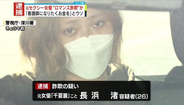 騙」而被捕。因涉嫌詐騙而被捕的嫌疑犯是長濱渚,她以「千夏麗」的名義活躍為性感