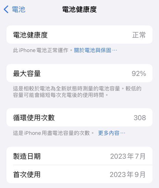 電池健康度92%