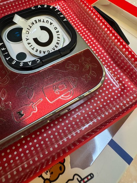 3. **手機保護殼**:CASETiFY x Hello Kitty 銀色鏡面保護殼,正常使用邊緣有些掉漆