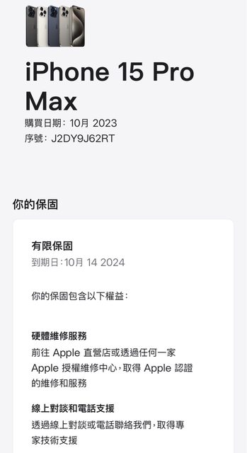 保固日期:2024/10/14