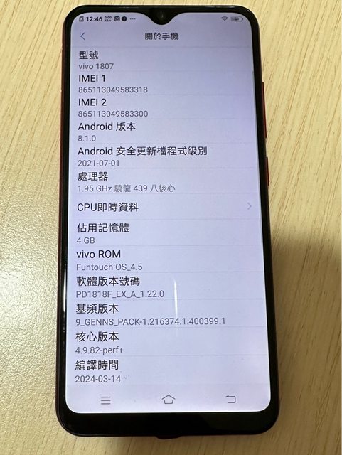 標題[賣/雙北/皆可] VIVO Y95 4GB+64GB 極光紅