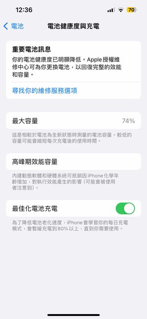 無維修紀錄,無明顯刮痕,電池健康度74%