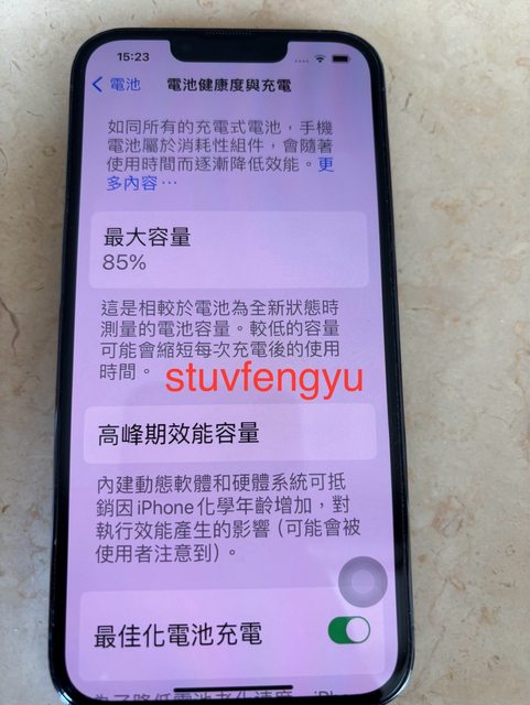 物品狀況:電池健康度85%,全程使用保護貼保護殼,無維修紀錄