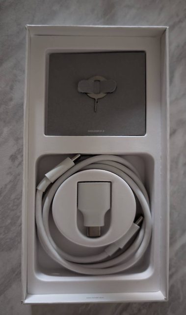 盒裝內含:原廠快充線、轉接頭、退卡針