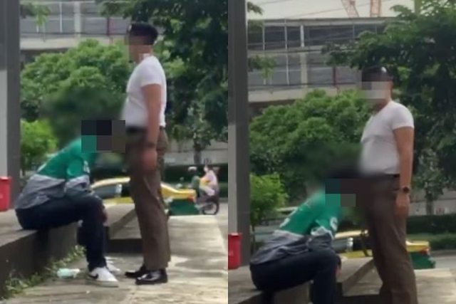 ▲泰國一名外送員疑似在警局外替警察公開口交,目前尚未鎖定2人身分。(圖/翻攝自