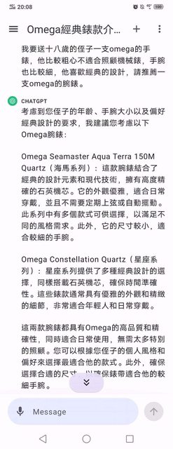 請chatgpt推薦錶!