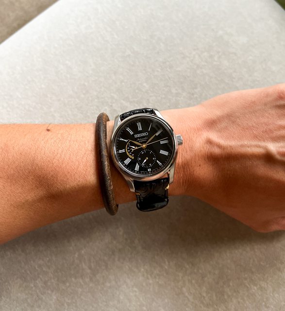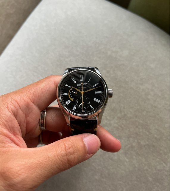 1.Seiko 黑色漆面黑金面盤,面盤漆藝是使用日本漆樹樹液取出再經過多道工藝製成,黑