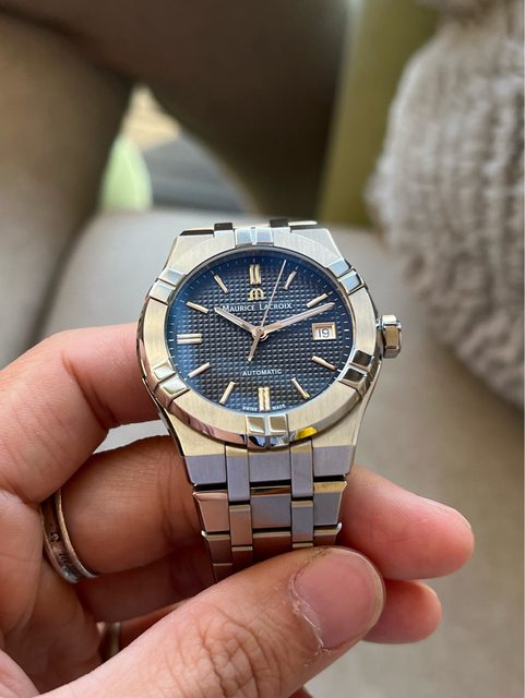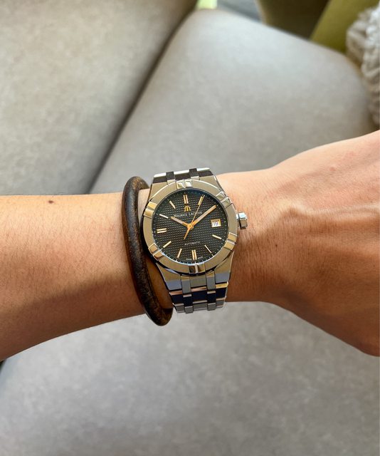 1.艾美經典Aikon系列39mm棕金面,漂亮巴黎釘紋面盤很有層次感,39mm的尺寸上手不管