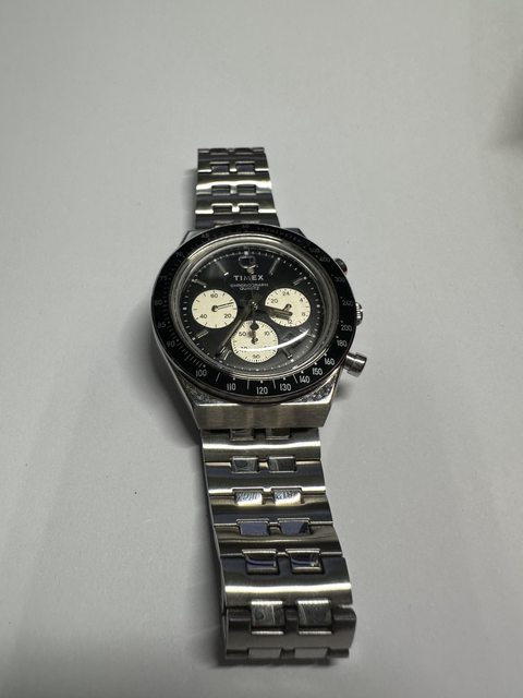 手錶型號:Q Timex復刻系列三眼石英計時錶 黑/銀 TXTW2V42600